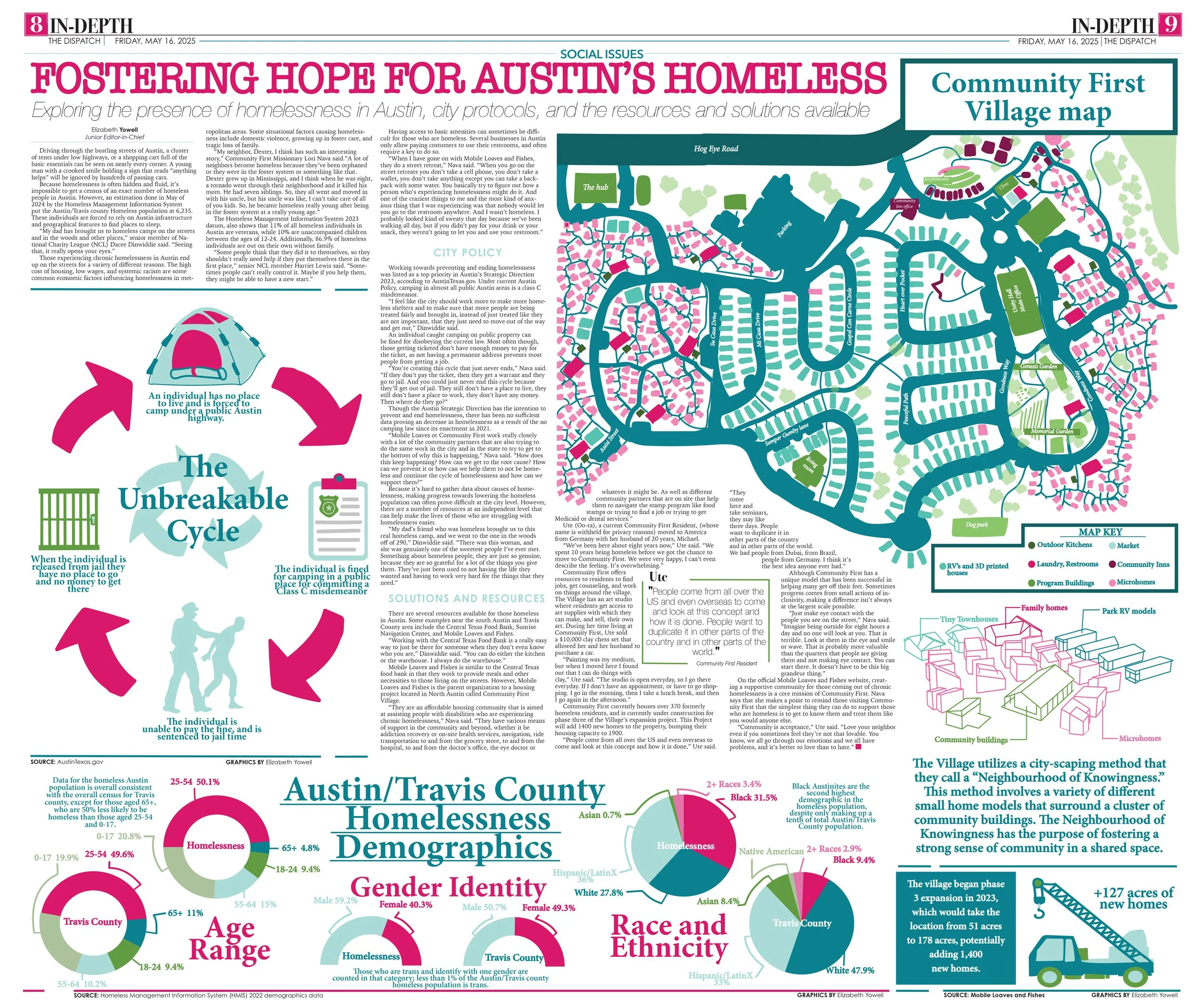 This story was one incredibly close to my heart and it was very important to me that I cover it with as much heart as possible and driving home that solutions journalism that makes me unique as a reporter. I wanted to convey that sense of hope in my design as much as in my story and I did that with hard-hitting infographics detailing the unique and impactful work of the non-profit Community First Village.